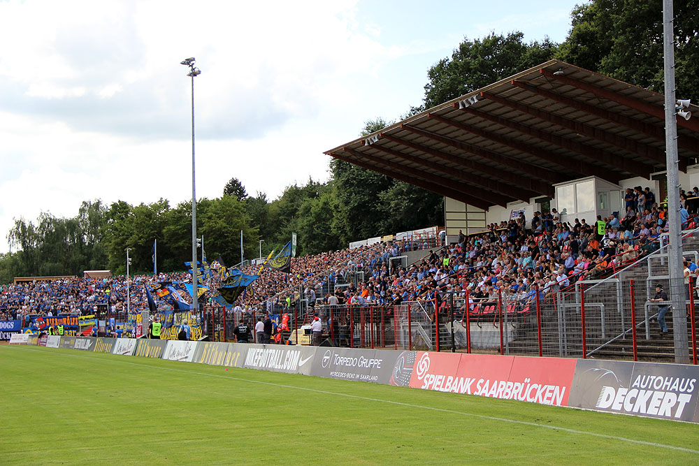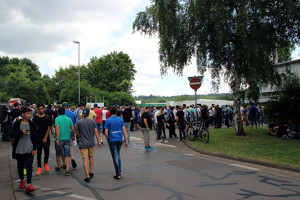 Schön zu beobachten war es, dass der 1. FC Saarbrücken seine Fans wohl vorerst wieder zu großen Teilen hinter sich bringen konnte: Die Veränderungen im Verein, sowie in der Regionalligaelf zeigen Wirkung. Offiziell stürmten knapp 4000 Zuschauer das Hermann-Neuberger-Stadion, Anwesende sind mit dieser Zahl nicht einverstanden: „Das sind mindestens 4500, wenn es keine 5000 sind!“, so ein Fan. Auch Vertreter des SV Röchling Völklingen waren sich schon zur Halbzeit sicher, dass es mehr sind: „5000-6000 Zuschauer“, wurden an den SVR-Präsidenten und Ex-Aufsichtsrat des FCS schon bevor eine offizielle Zahl gemeldet wurde telefonisch gemeldet, „es wurde sogar 15 Minuten später angepfiffen, so groß ist der Andrang!“, berichtet er weiter.