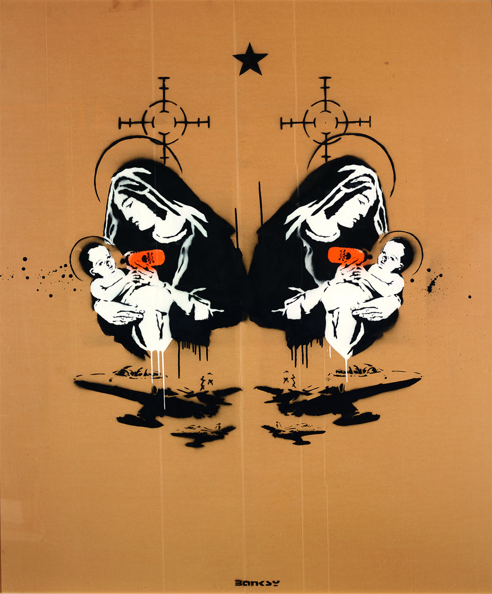 #Völklingen. Er ist der Star der UrbanArt. Und er ist einer der Väter der interventionalen UrbanArt, die mit Kunstaktionen direkt in den Stadtraum eingreift. Gerade hat der Brite Banksy sein neuestes Projekt vorgestellt, ein Hotel in Betlehem mit dem ‚schlimmsten Ausblick‘ der Welt – dem Blick auf die Grenzmauer zwischen Israel und Palästina. Passend zum Schwerpunkt der interventionalen UrbanArt zeigt das Weltkulturerbe Völklinger Hütte auf der „4. UrbanArt Biennale® 2017“ ein Banksy-Werk. „Toxic Mary“ wurde in der legendären „Turf War“-Ausstellung in einem Londoner Lagerhaus gezeigt. Während der „4. UrbanArt Biennale® 2017“ wird dieses Werk für mehrere Monate im Weltkulturerbe Völklinger Hütte zu sehen sein. Es handelt sich um das signierte Unikat mit einer Breite von 2.06 Metern und einer Höhe von 1.76 Metern. Das Banksy-Werk ist eine Leihgabe der Münchner Galerie Kronsbein.