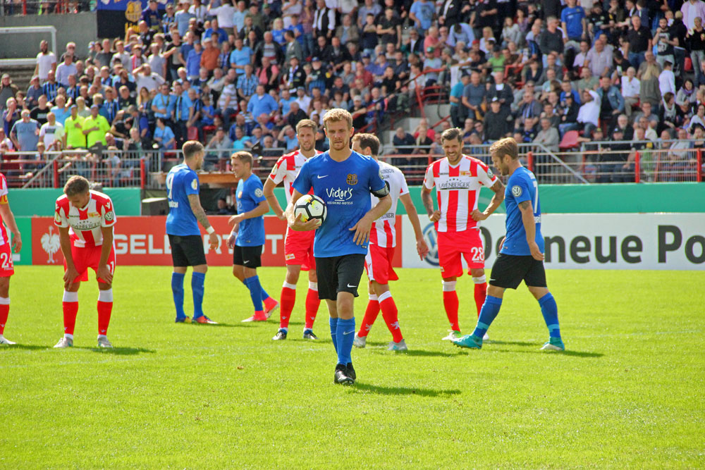 Und promt sind sie da:Behrens wurde zwar im Strafraum per Foul gestoppt, doch Dausch reagierte schnell und jagte die Kugel ins Netz. Doch der Tor-Jubel stoppte abrupt. Schiedsrichter Sören Storks gab den Treffer nicht und entschied auf Strafstoß. Zeitz übernahm die Verantwortung, aber Torwart Daniel Mesenhöler parierte den Elfmeter und sammelte dabei wohl Kräfte, die das Spiel später noch entscheiden sollten.