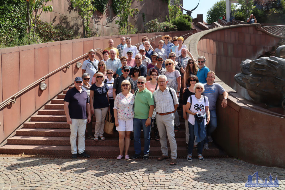 #Völklingen. „Auf in die Palz!“ – So lautete das Motto der diesjährigen Abteilungsfahrt des TSC Royal Völklingen. Fahrtenleiter Bernard Oremek hatte auch diesmal wieder keine Mühe gescheut und eine bis ins kleinste Detail perfekt organisierte Fahrt ausgearbeitet. Diesmal ging es in die nahegelegene Westpfalz, wo man nach einem Sektfrühstück beim Outletcenter Zweibrücken fröhlich beschwingt in der „Schlabbeflicker“-Stadt Pirmasens eintraf, in der es bei einer Stadtführung bekannte und weniger bekannte Sehenswürdigkeiten zu bestaunen gab wie zum Beispiel den Schlossplatz mit dem berühmten Schlossbrunnen und der Schlosstreppe, den Exerzierplatz, aber auch die ein oder andere kurzweilige Geschichte zur Stadt und ihren Bewohnern erzählt wurde. Hierbei erfuhr man, dass Pirmasens früher eine Garnisonsstadt und einst die größte Schuhmetropole Europas war. Und ganz nebenbei befanden sich unsere Ausflügler mitten in einem Straßenmusikerfest und konnten an vielen Plätzen in der Fußgängerzone den Klängen und Darbietungen der Musiker und Aktionskünstlern zuhören und zusehen.