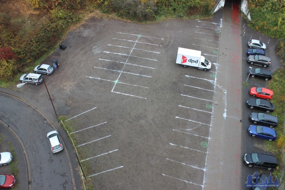 Krönender Abschluss dieser gelungenen Aktion war, dass die Freiwillige Feuerwehr Völklingen Mitte, mit einer Drehleiter zur Örtlichkeit kam. Somit konnte Feuerwehrmann Rafael Mailänder, in schwindelder Höhe, Fotos der Markerungsarbeiten machen.