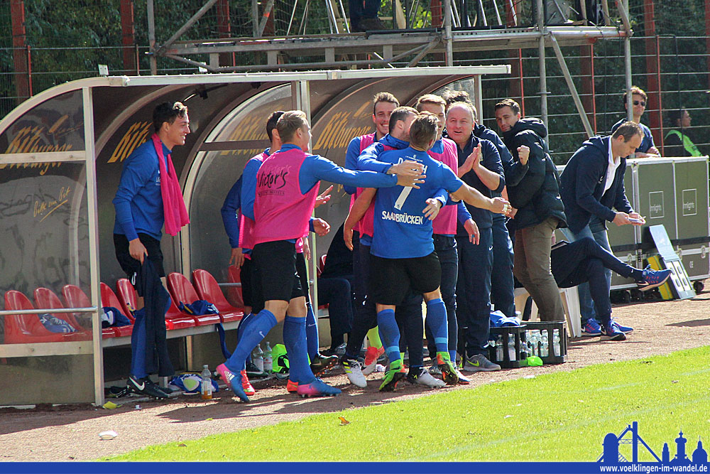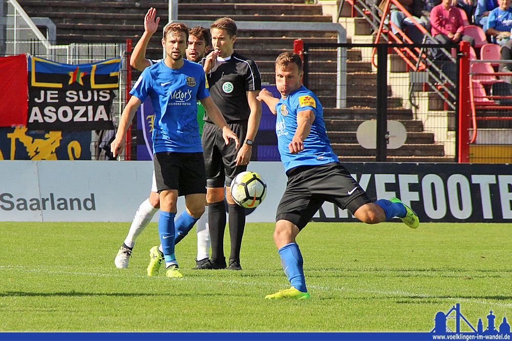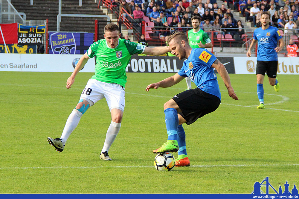 Doch Lottners Elf bewies auf dem Platz, das man in den Reihen des 1. FC Saarbrücken (mehr) als genug Qualität hat, ein Spiel zu drehen – die Blauschwarzen übernahmen das Kommando. In der 17. Minute verfehlte Patrick Schmidt das gegnerische Gehäus, wenig später fehlte auch Kevin Behrens noch die Genauigkeit.