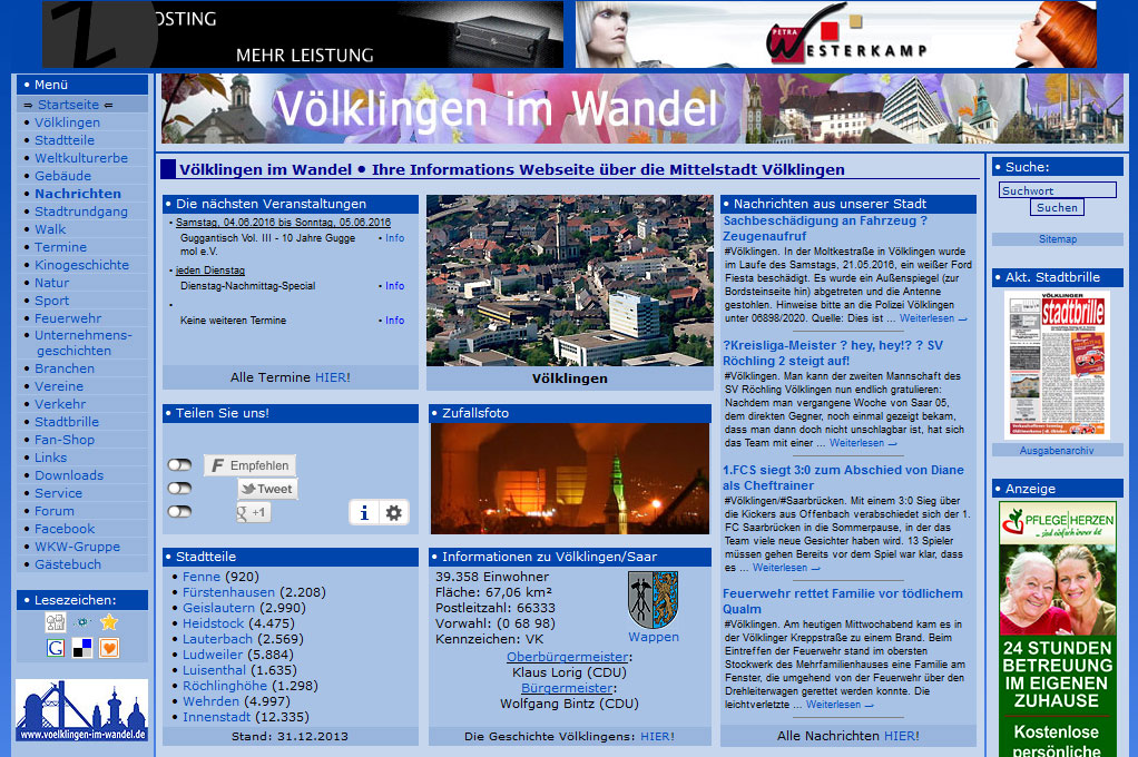 Natürlich wurden auch die bereits bekannten Seiten überarbeitet und mit neuen Inhalten gefüttert. Da Völklingen im Wandel ist lebt die Seite nicht nur in ihren Nachrichten weiter, sondern auch die Informationsseiten werden wie gewohnt auf dem neusten Stand gehalten.