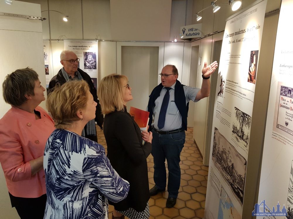 Oberbürgermeisterin Christiane Blatt und die Forbacher Beigeordneten Carmen Harter-Houselle und Denise Kordzinski konnten sich bereits beim Besuch der Ausstellung im Alten Rathaus einen persönlichen Eindruck verschaffen. Der erste Vorsitzende des Vereins, Jacques Koenig, führte persönlich mit Vereinsmitglied Joseph Zeller durch die Ausstellung und ergänzte die auf den Roll-ups gezeigten Fotos und Beschreibungen um viele weiteren Details aus der Forbacher Geschichte. PM Stadt