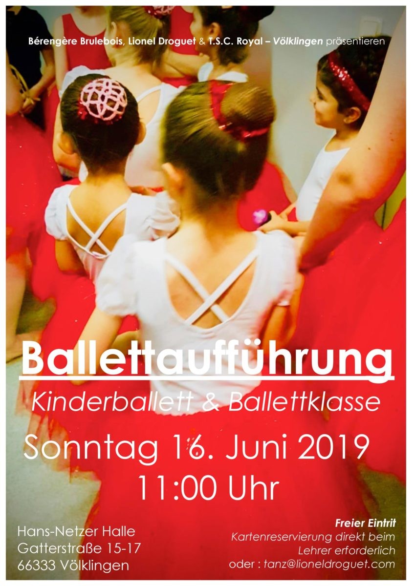 #Völklingen. Am Sonntag, den 16. Juni, zeigen die Balletttänzerinnen und Balletttänzer des TSC Royal Völklingen um 11 Uhr in der ehemaligen Gaststätte in der Hans-Netzer-Halle, Gatterstraße 15, Völklingen, Auszüge aus dem Ballettunterricht sowie einstudierte Choreografien.