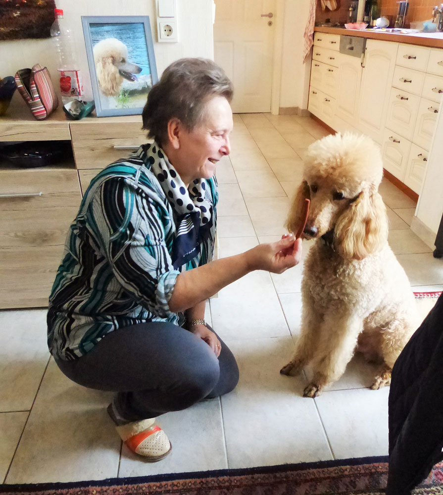 Nach Jerry*. So heißt der apricotfarbene, ihr fast bis zur Hüfte reichende Königspudel der Kellers. „Barbara hat sich schnell mit dem Hund angefreundet“, berichtet Angelika Keller. Wer die Beiden zusammen sieht, könnte meinen, sie kennen sich schon ewig. „Ich bin die Hundetante“, lacht die polnische Betreuungskraft. Zu ihren Pflichten gehörte das tägliche Gassigehen mit Jerry. Auf einem dieser Spaziergänge hat Barbara Stafijowska in der Stadt durch Zufall eine Landsmännin kennengelernt, mit der sie sich dann ab und zu verabredete.