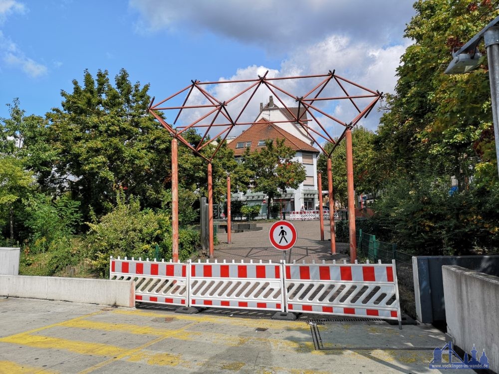 Wie aus dem Rathaus zu erfahren war, ist dies ein erster Schritt im Rahmen der Völklinger „Stadtaufhübschung“. Weitere Details zu diesem Aufhübschungsprogramm wollte man uns allerdings noch nicht nennen. Das rote Gittergestell sei jedenfalls baufällig, weswegen die Verkehrssicherheit nicht mehr gewährleistet werden könne.