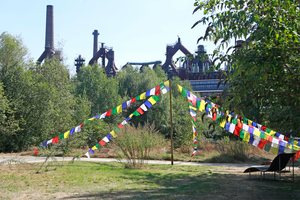 In der Granulieranlage, wo einst aus Hochofenschlacke Granulat hergestellt wurde, ist heute das Rauschen des Wassers im Granulierbecken zu hören. In einem Raum an dieser Anlage ist eine Meditationsstation eingerichtet. Die Besucher betreten „Das Paradies“ unter tibetischen Gebetsfahnen. Hier, auf dem Gelände der ehemaligen Kokerei, wo Hitze, Staub und Feuer regierten, führt der „Pfad der Erkenntnis“ zu einem Steingarten im „Paradies“. Der Innenraum eines ehemaligen Kamins der Kokerei mit dem spektakulären Blick durch den Schlot auf den Himmel wird ebenfalls zu einem Meditationsort. Auf der 32 Meter hohen Gichtbühne finden sich Kreidezeichnungen der acht tibetischen Glückssymbole auf der Haube eines Hochofens – gleich einem Stupa.