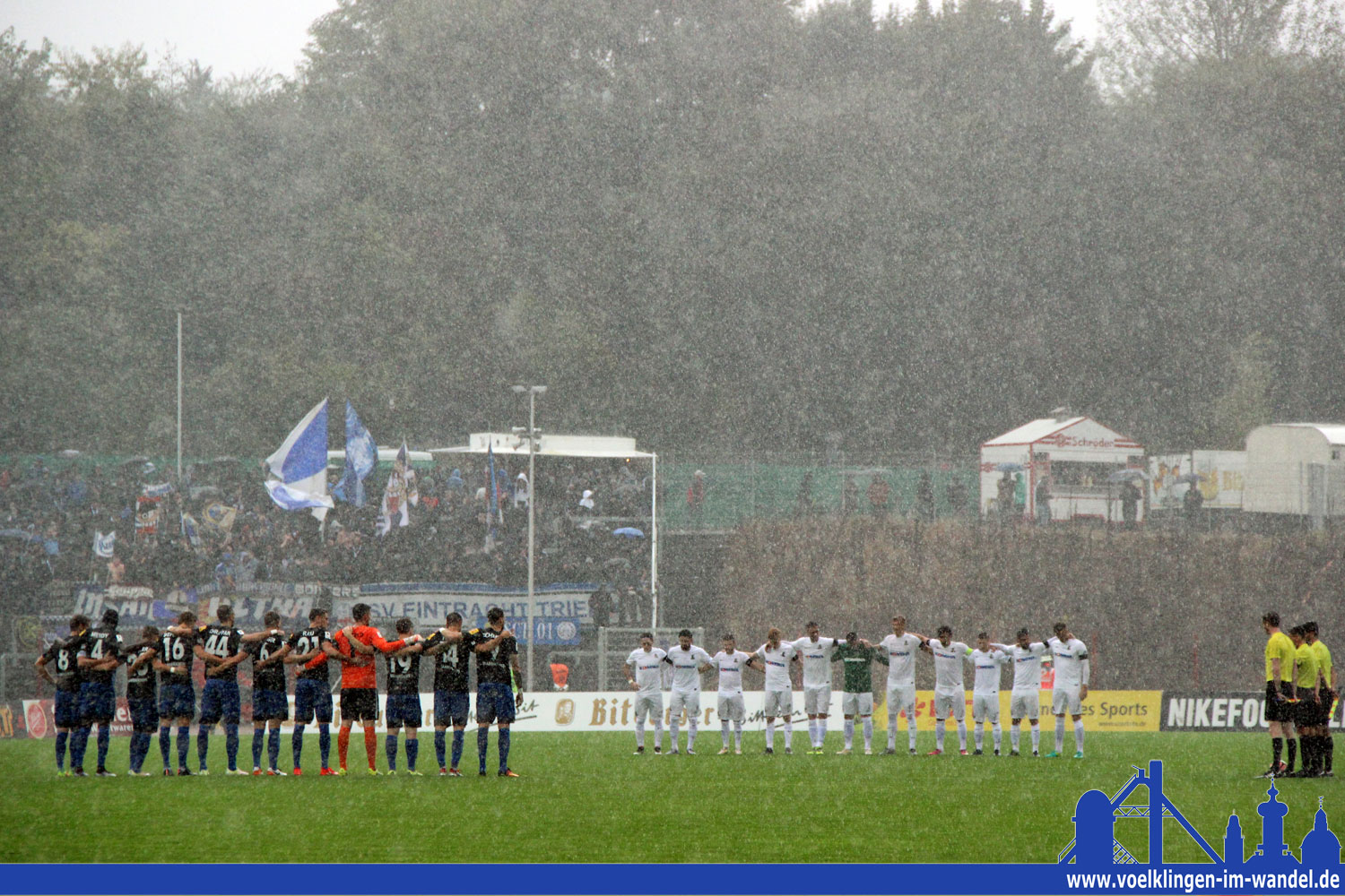 Schweigeminute im Hermann-Neuberger-Stadion bei strömenden Regen: Teams trauern um Herbert Martin (Foto: Hell)