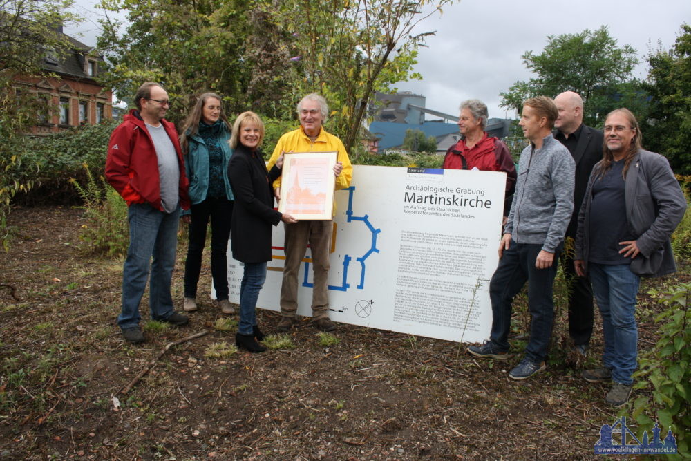 Bei der Überreichung der Patenschaftsurkunde stellvertretend an Walther Göggelmann lobte die Völklinger Oberbürgermeisterin Christiane Blatt im Beisein von Bürgermeister Christof Sellen sowie Constanze Höpken vom Landesdenkmalamt die Initiative der Arbeitsgemeinschaft. Die Stadt sei auch in diesem Bereich auf Helferinnen und Helfer angewiesen und freue sich, „wenn engagierte Menschen sich bereit erklären, für solche Aufgaben  Verantwortung zu übernehmen.“