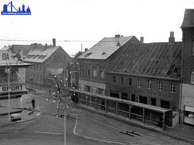 Dieses stattliche Wohn- und Geschäftsgebäude musste nach dem Krieg einem modernen, zweigeschossigen Pavillion weichen, der das Kaufhaus Ostrolenk von da an beherbergte. Noch bis 1966/67 war das Stadtbild in diesem Viertel recht abwechslungsreich: Neben Häuschen aus dem 19. Jahrhundert standen stattliche Bauten der Jahrhundertwende – mit der Hütte kam Geld in die Stadt – und das besagte Ostrolenk-Kaufhaus. Und direkt gegenüber fand sich das heute denkmalgeschützte (Alte) Rathaus.