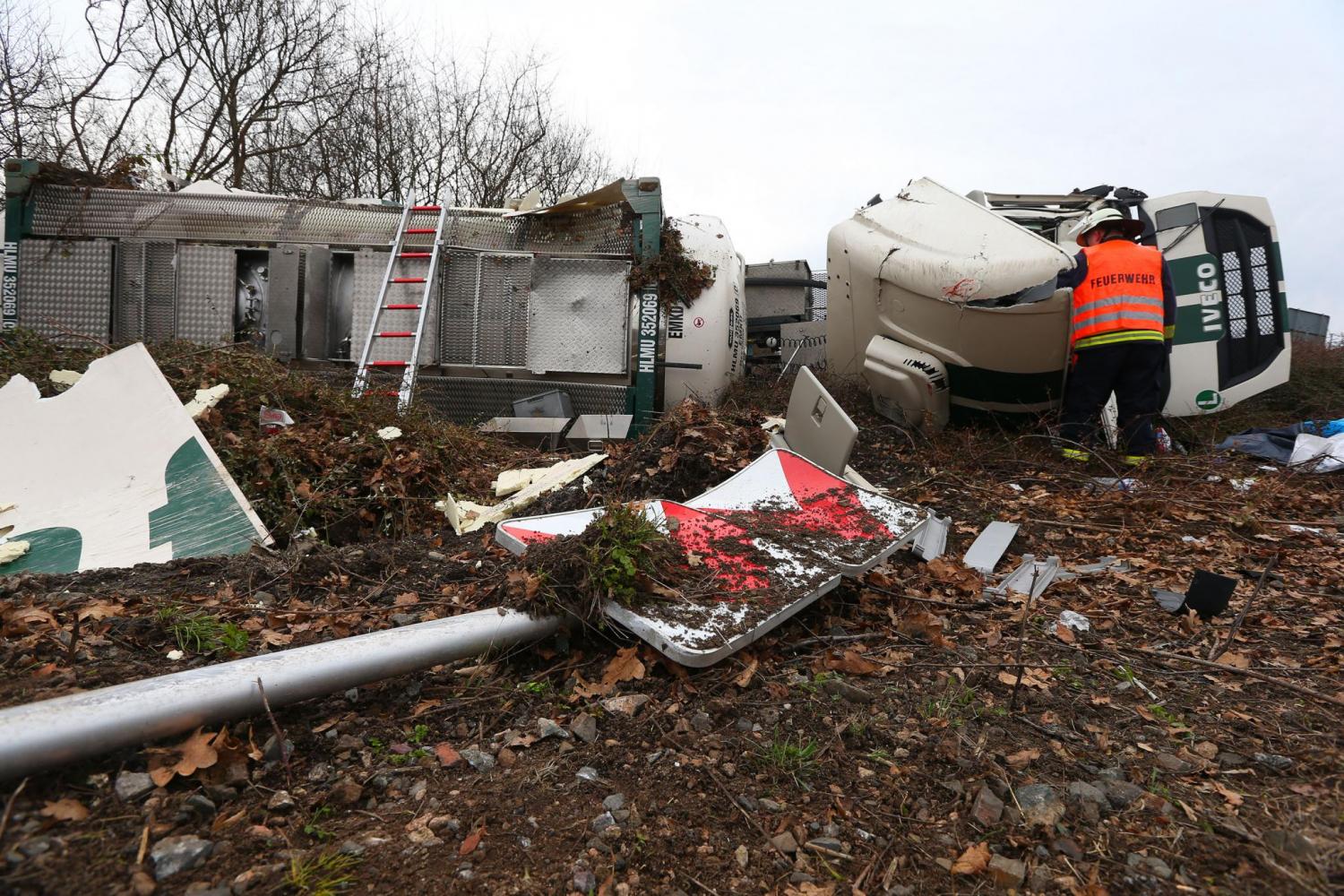 Der Auflieger war mit 35.000 Liter flüssigem Acryllack beladen. Zu einem Austritt der Ladung kam es nicht. Der Sachschaden wird nach ersten Angaben auf mindestens 100.000 € geschätzt.