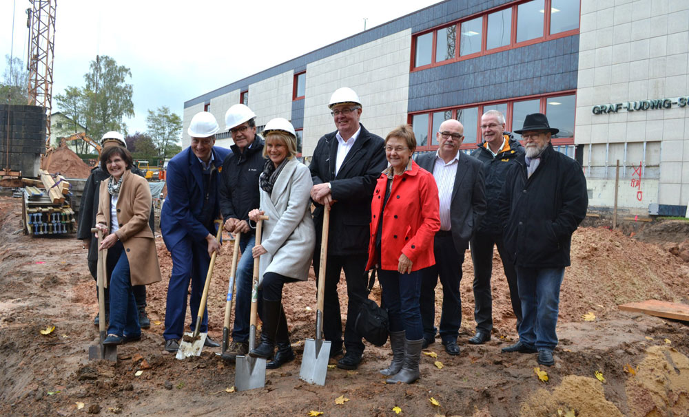 #Ludweiler. Der Regionalverband Saarbrücken errichtet als zuständiger Schulträger an der Graf-Ludwig-Gemeinschaftsschule im Warndt einen Erweiterungsbau für rund 1,85 Millionen Euro. Regionalverbandsdirektor Peter Gillo, Schulleiterin Rita Müller, die Ludweiler Ortsvorsteherin Christiane Blatt und Jan Schroller vom beauftragten Architekturbüro S.I.G: Schroll Consulting haben den offiziellen Spatenstich genutzt, um die Baumaßnahme näher vorzustellen. Derzeit laufen bereits die Arbeiten am Fundament.
