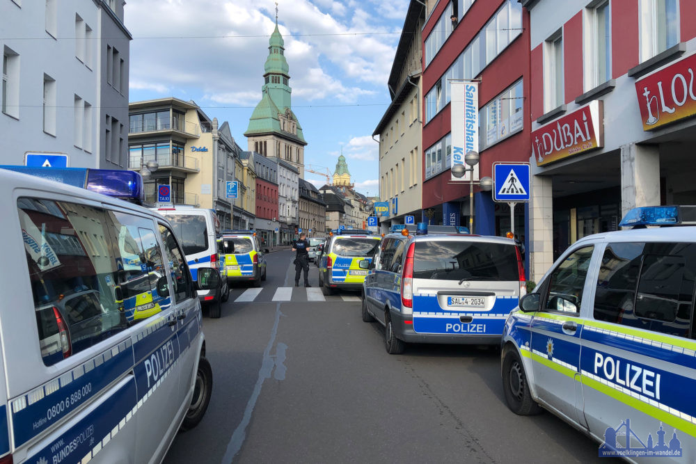 #Völklingen. Wilde Szenen am Mittwochabend, dem 1. Mai 2019, in der Völklinger Innenstadt. Gegen 18 Uhr meldeten wohl gleich Mehrere unbeteiligte eine große Schlägerei bei der Polizei, die im Bereich des Kreisverkehrs Rathausstraße und Poststraße im Gange sei. Sofort schickt die Dienststelle mehrere Polizeikommandos zum Ort des Geschehens. Weil zu befürchten steht, dass die Schlägerei schlimmere Ausmaße annehmen könnte, rücken auch Streifenwagen aus Saarbrücken, die Bereitschaftspolizei und mehrere Fahrzeuge der Bundespolizei an um schlimmeres zu verhindern.
