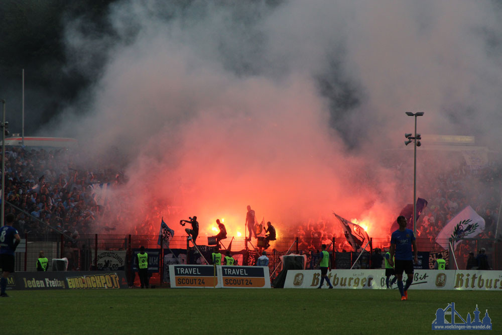 Großer Kampf in Unterzahl: FCS verliert Hinspiel gegen 1860 München 2:3 | Pyrotechnik im Gästeblock : Völklingen im Wandel