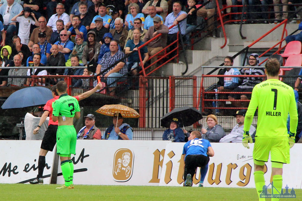 Die „Molschder“ zeigten sich relativ unbeeindruckt vom Rückstand, immerhin hatte man ja zusammen mit dem Rückspiel 179 Minuten Zeit das 0:1 aufzuholen – dochdurch eine unbedachte Aktion brachte sich Kevin Behrens um seine restliche Spielzeit beim FCS: Völlig übermotivert pflügte er mit gestrecktem Bein in seinen Gegenspieler – Der Unparteiische zögerte keine Sekunde und zog glatt Rot: Die richtige Entscheidung, so schwer es FCS-Freunden fallen wird dies zuzugeben.