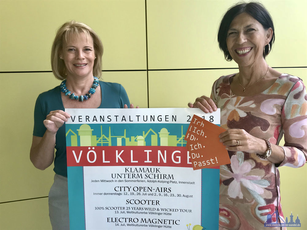 Die Werbekampagne der Stadt Völklingen wird verantwortet vom Referat für Presse und Öffentlichkeitsarbeit der Stadt Völklingen. Alle Entwürfe stammen von der Grafik-Designerin Karin Scherer. PM Stadt VKL