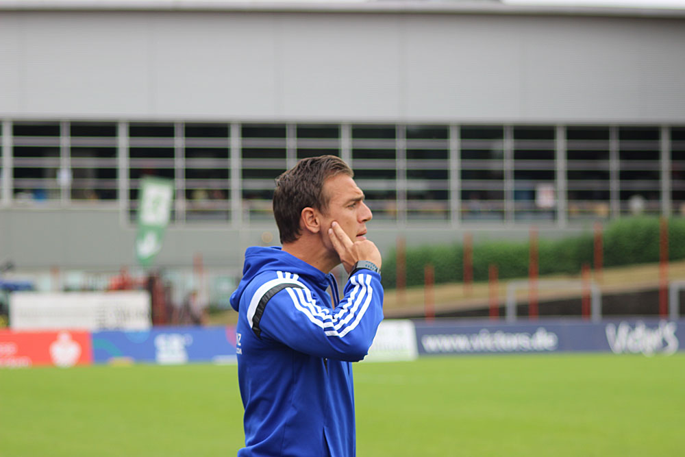 Der Co-Trainer der Gäste ist angespannt: Seine Laune lässt zusehends nach. Sein Tipp an die Spieler grenzt an Unsportlichkeit, die in der zweiten Hälfte belohnt werden soll. „Du weißt doch! Fallen lassen und schreien!“, ruft der Karbacher Co-Trainer Klasen aufs Spielfeld, nachdem einer seiner Spieler in einem aggressiven Zweikampf vom Ball getrennt wurde.