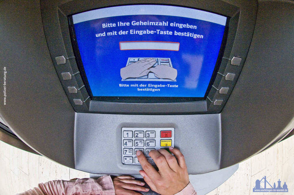 Die Vorgehensweise bei dieser Kriminalitätsform, die in den vergangenen Wochen vermehrt festgestellt wurde, läuft in vielen Fällen ähnlich ab. Die PIN wird am Überweisungsterminal oder am Geldautomat ausgespäht. Das Opfer wird abgelenkt, um die Bankkarte direkt aus dem Gerät zu entwenden. Dem Opfer wird glaubhaft gemacht, der Automat habe die Karte eingezogen. Perfider Weise wird im Rücken des Opfers an einem anderen Geldautomaten mit der gestohlen Karte bereits über sein Konto verfügt. Ein Indiz für Vorbereitungshandlungen zu einem solchen Trickbetrug sind abgeschnittene Sichtschutzkappen, die an den Geräten angebracht sind und eine sichere Eingabe der PIN gewährleisten sollen.