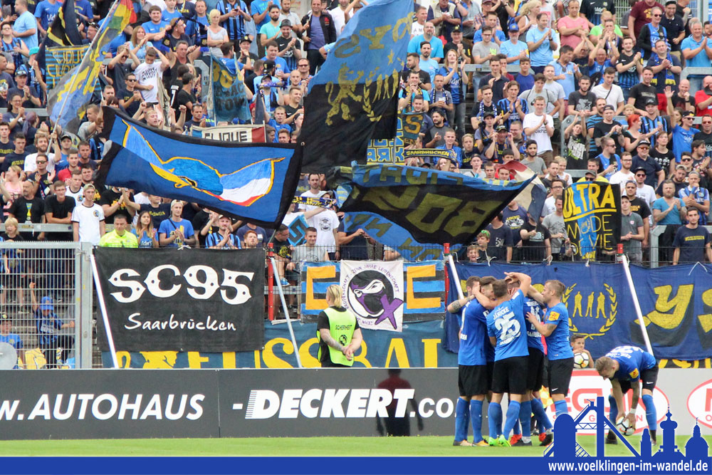 #Völklingen/#Saarbrücken. Zum Abschluss des achten Spieltags tritt der 1. FC Saarbrücken am Sonntag gegen den Drittliga-Absteiger FSV Frankfurt an. Die Partie wird um 14 Uhr im Hermann-Neuberger-Stadionin Völklingen angepfiffen. Bereits gestern versammelten sich 40 Demonstranten in Saarbrücken mit dem Ziel: Schnellst möglich raus aus Völklingen!