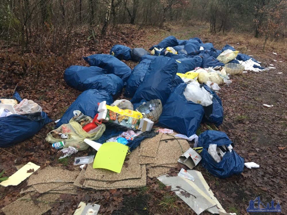 #Völklingen/#Ludweiler. Am Samstag, den 12.01.2019 wurde durch einen Spaziergänger eine illegale Müllentsorgung in der Straße Eichenkopf in Völklingen-Ludweiler, in dem dortigen Waldstück, gemeldet und fotografisch festgehalten. Dort wurden mehrere blaue Säcke mit Hausmüll, vermutlich von Renovierungsarbeiten, sowie Autoreifen entsorgt. Die Lichtbilder des Spaziergängers befinden sich im Anhang. Zeugen werden gebeten sich bei der Polizeiinspektion Völklingen oder einer anderen Dienststelle zu melden. PM PI VKL