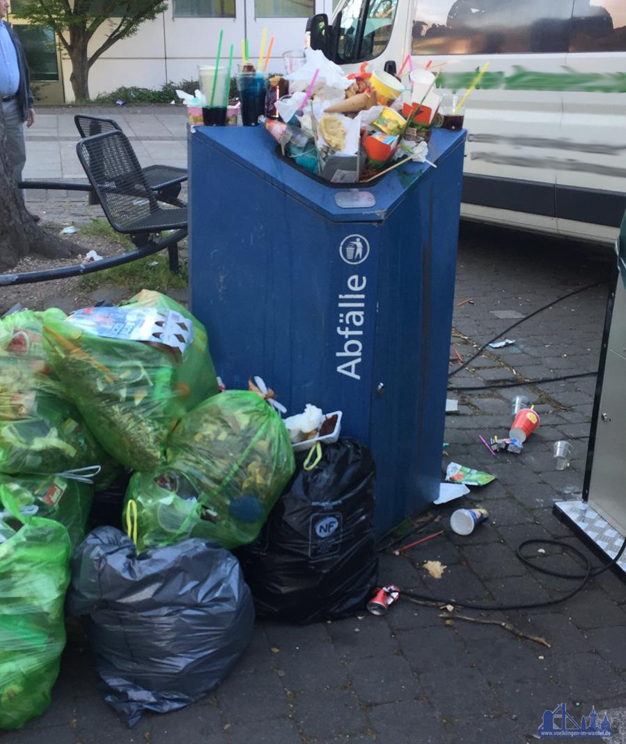 #Völklingen. Am 05. April wurde noch der Start der Kampagne „Völklingen – Saubere Stadt: Mach mit!“ gefeiert, über Ostern bot sich den Besuchern der Völklinger Osterkirmes dennoch ein unakzeptables Bild: Die Mülleimer auf dem Markplatz liefen über, der Müll türmte sich ringsherum. „Mit solch einem Anblick wird Völklingen kein Image als saubere Stadt aufbauen können!“, stellt Andreas Hell, Ortsratskandidat der CDU Völklingen, fest: „An Markttagen, langen Wochenenden, Spieltagen des 1. FC Saarbrücken oder sonstigen Veranstaltungen müssen die Mülleimer auch an den Wochenenden geleert werden! Gleiches gilt für Spielplätze und Parkanlagen, dort wo sich die Menschen eben auch am Wochenende zahlreich versammeln. Sollte dies der Stadtverwaltung nicht mit eigenem Personal möglich sein, muss eben ein Dienstleister diese Aufgaben übers Wochenenden erledigen.“