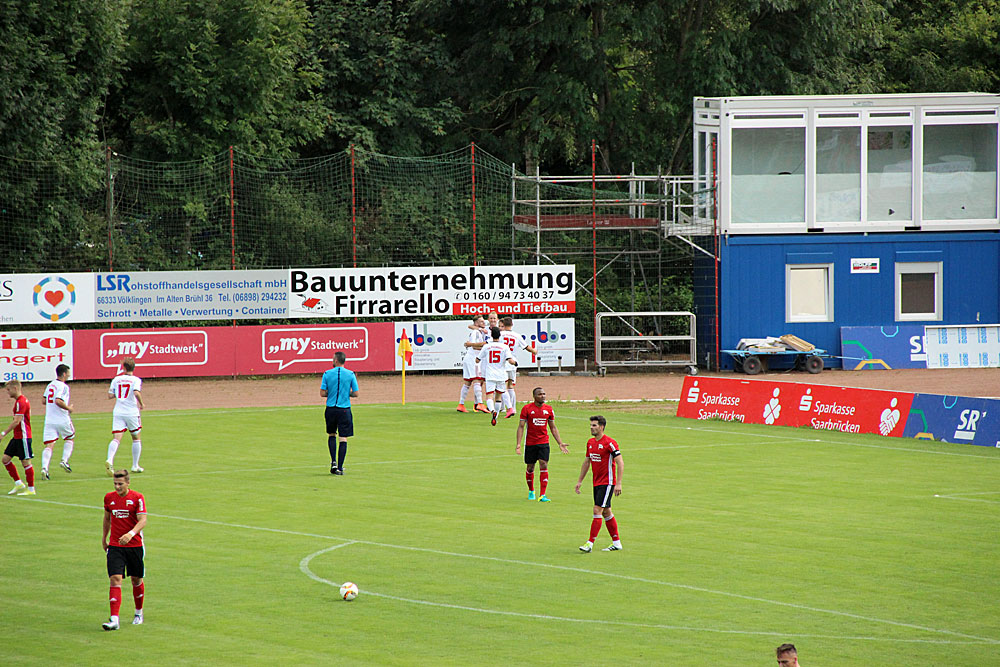 Es ist schönstes Sommerwetter, in der Sonne wird es heiß – der SV Röchling Völklingen bergüßt knapp 300 Zuschauer zur Heimpremiere der neuen Fußballoberligasaison.