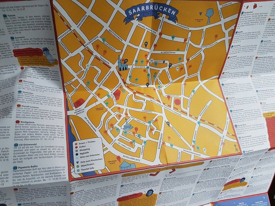 Beim Wirtschaftsministerium stößt die Kritik der Saarbrücker Geschäftswelt jedenfalls auf taube Ohren: Es handle sich nicht um eine Auftragsarbeit, sagte eine Sprecherin der Saarbrücker Zeitung und auch uns. Die Karte ist der Gewinnerbeitrag des Wettbewerbs Bunte Visionäre in dessen Rahmen Beiträge gesucht wurden, die über die Grenzen des Saarlandes hinweg Kreativität in unserem Land beweisen.