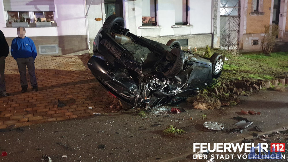 #Völklingen-#Lauterbach. Nachdem ein bislang Unbekannter einen Peugeot 306 in Frankreich entwendete, verursachte er hiermit am Dienstagabend gegen 22:30 Uhr einen schweren Verkehrsunfall in der Hauptstraße in Lauterbach in Richtung Frankreich. Aufgrund erheblich überhöhter Geschwindigkeit verlor der Fahrer in einer Linkskurve die Kontrolle über das Fahrzeug. Der PKW kollidierte zunächst mit einem am rechten Fahrbahnrand ordnungsgemäß geparkten Hyundai. Durch die Wucht des Aufpralls wurde der Hyundai ca. 20 m nach vorne katapultiert, kollidierte dort mit zwei Grundstücksmauern, überschlug sich in Folge dessen und kam letztlich im Vorgarten eines Anwesens auf dem Fahrzeugdach zum Liegen.