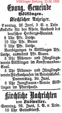 Neuer ev. Pfarrer wurde Karl Emil Rudolf Jacob. geb. am 8. Oktober 1880 in Saarbrücken. Er war Pfarrer in Völklingen bis 1950 und hatte die erste Pfarrstelle.