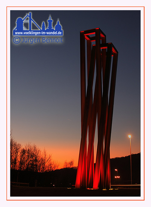 Seine Saarstahl-Skulptur ist für den Künstler HD Schrader eine Premiere im Saarland. Sie markiert nunmehr den westlichen Eingang zur Stadt Völklingen, unmittelbar neben der Bundesstraße 51 und dem Torhaus 10, einem der zentralen Torhäuser der Saarstahl AG.