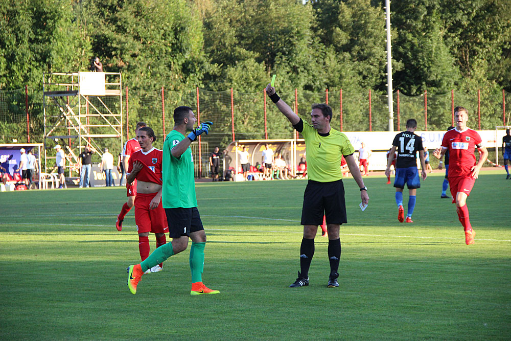 Nach 34 Minuten dann die verdiente Führung für den FCS: Patrick Schmidt kam im Strafraum beim Wormser-Schlussmann Kroll zu Fall, der Schiedsrichter entschied sofort auf Elfmeter – der Torhüter wurde mit Gelb bestraft. Manuel Zeitz ließ sich nicht durch die ewigen Diskussionen des Gegners verunsichern, er verwandelte sicher zum 1:0. In den folgenden Spielminuten lag bereits das 2:0 in der Luft, doch immer wieder lag es an Kleinigkeiten: Zuerst zielte Schmidt nach einem feinem Zuspiel von Sascha Wenninger zu hoch, anschließend scheitere Behrens nach tollem Pass von Sven Sökler am Gästetorwart. „Das Einzige, was ich meiner Mannschaft am heutigen Tag vorwerfen kann, ist die Ausbeute. Wir hätten uns gerade bei diesen Temperaturen früher belohnen müssen“, sagte Lottner nach dem Spiel.