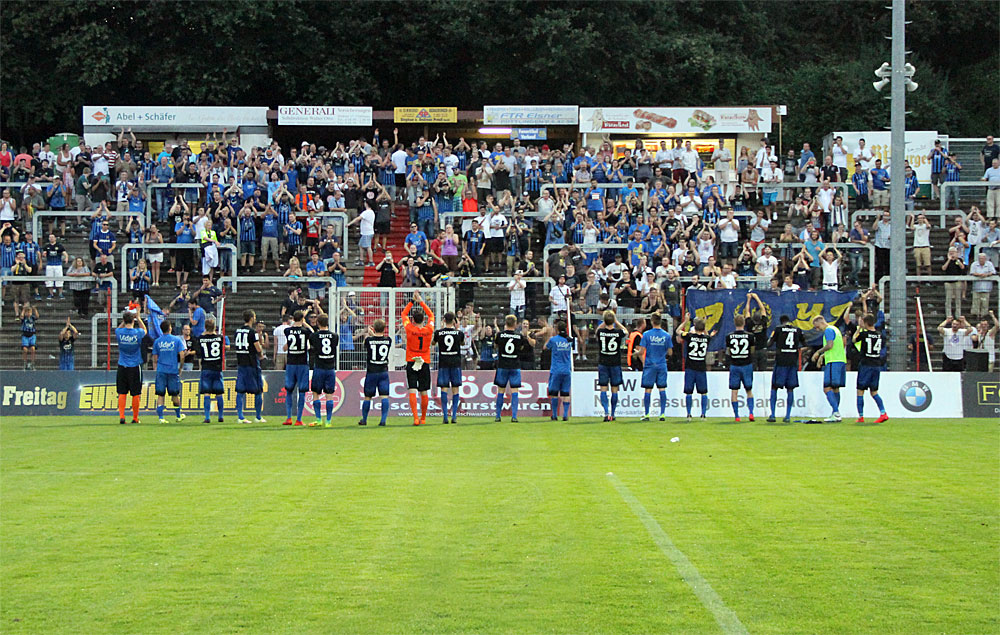 Der FCS verwaltet bei den hohen Temperaturen die Führung. Zwei Chancen durch Behrens und Jordan Steiner blieben ungenutzt. Auf der Gegenseite tauchte Güclü noch einmal frei vor FCS-Keeper David Salfeld auf, der dessen Schlenzer aber zur Ecke lenken konnten. „Ich denke, man muss nicht groß rumreden. Der Saarbrücker Sieg war verdient“, gab der bisher sieglose Gästetrainer Steven Jones ohne Ausreden zu. Dirk Lottner nahm dies zufrieden zur Kenntnis, sprach seiner Mannschaft „ein Riesenkompliment“ aus.