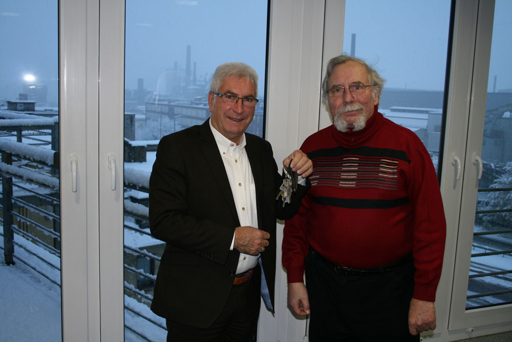 #Völklingen. Die Stadt Völklingen hat das sogenannte „Weisse Haus“ in der Karl-Janssen Straße 4 erworben. Der Kaufvertrag über das Anwesen in direkter Nachbarschaft zum Alten Rathaus wurde Im Beisein von Oberbürgermeister Klaus Lorig und des früheren Besitzers Hans-Werner Westermann im Notariat Britz & Ludwig beurkundet. Im Anschluss übergab Westermann symbolisch die Schlüssel an den Völklinger Rathauschef. Das „Weisse Haus“ liegt im direkten Umfeld des ehemaligen Kaufhofgeländes, das nun vor einer Neubebauung steht.