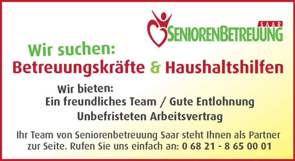 Stellenanzeige: Die Seniorenbetreuung Saar sucht Verstärkung für ihr Team