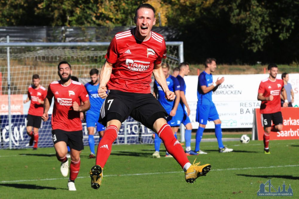 Was folgte waren schnelle Angriffe des SV Röchling. Das 1:1 des SVR resultiert aus einem Freistoß nach Foul an Jan Issa. Issa wurde unsanft gestoppt, den fälligen Freistoß zirkelte er an der Mauer vorbei. Vom Innenpfosten geht der Ball ins Tor. Kurz vor der Halbzeit konnte der vom 1. FC Saarbrücken ausgeliehene Keeper Patrik Herbrand einen Freistoß der Gäste aus dem Winkel mit den Fäusten abwehren.