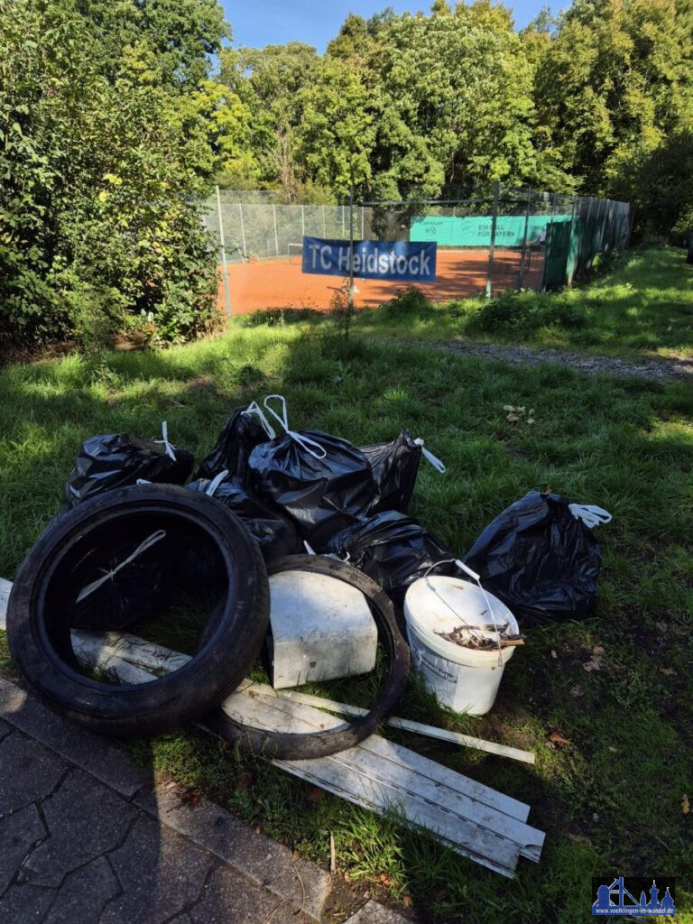 Viel Grün umgibt die Tennisanlage des TC 77 Völklingen-Heidstock. Bei genauerem Hinsehen in die Büsche und den Wald erspäht man aber ständig Hinterlassenschaften von gedankenlosen oder auch vorsätzlichen Umweltsündern und –sünderinnen. Eine kleine Gruppe der Vereinsmitglieder ist dieser Vermüllung anlässlich des World-Clean-up-Days entgegengetreten und hat in Feld, Wald und Flur rund um die Tennisplätze für Sauberkeit gesorgt. In rund zwei Stunden Arbeit kam dabei eine beträchtliche Menge zusammen, die dankenswerterweise von der Stadt zur Entsorgung abgeholt wurde. Neben den erwarteten Verpackungen, Dosen, Zigarettenkippen und Papiertaschentüchern wurden auch Autoreifen gefunden, die die Besitzer besser zum Wertstoffhof der Stadt bringen sollten. Ansonsten hoffen die fleißigen Sammler, dass Spaziergänger und Passanten zukünftig ihre Hinterlassenschaften in die dafür vorgesehenen Abfalleimer entsorgen.