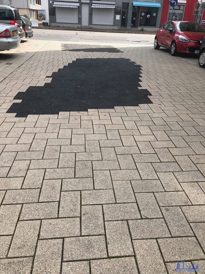 #Völklingen. Am 20. Juni berichteten wir darüber, dass in Völklingen scheinbar Edelsteine als Pflastersteine verwendet wurden, die scheinbar eine zweijährige Lieferzeit hätten. Nun, die zwei Jahre Lieferzeit haben wir nun wirklich nicht so ganz ernst gemeint. Und ein Edelstein ist auch etwas anderes, doch ist es uns unverständlich, warum die Stadt diese Schäden nicht gleich richtig in Stand setzt.
