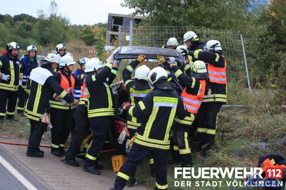 Hierfür wurde zuerst die Heckklappe und danach das Dach des verunfallten Fahrzeuges entfernt. Danach konnte die Person mit dem Rettungsbrett aus dem PKW gehoben und dem Rettungsdienst übergeben werden. Text/Foto: Feuerwehr Völklingen