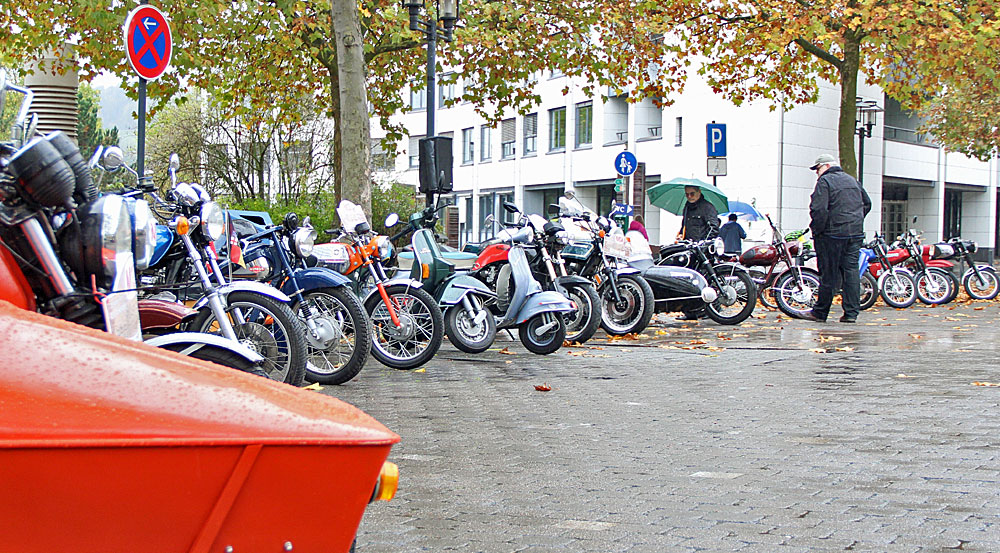 Letztes Jahr waren es 350 Teilnehmer, die Voraussetzungen bestens: Sonniges Herbstwetter lockte die Oldtimer-Verrückten zum Treffen in Völklingen. Dieses Jahr: Schmuddeliges Herbstwetter mit viel Regen, eher niedrige Temperaturen und doch kamen gut 160 Teilnehmer mit ihren rädrigen Schmuckstücken in die Mittelstadt.