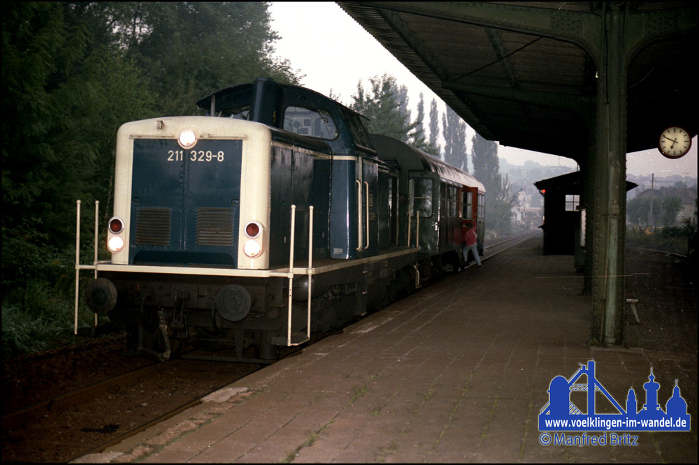 Noch im selben Jahr wird die Köllertalbahn bis Etzenhofen stillgelegt. Am 27. September 1985 fuhr der letzte reguläre Personenzug N 4162 mit der Lokomotive 212 377 des Bw Saarbrücken auf der Strecke.