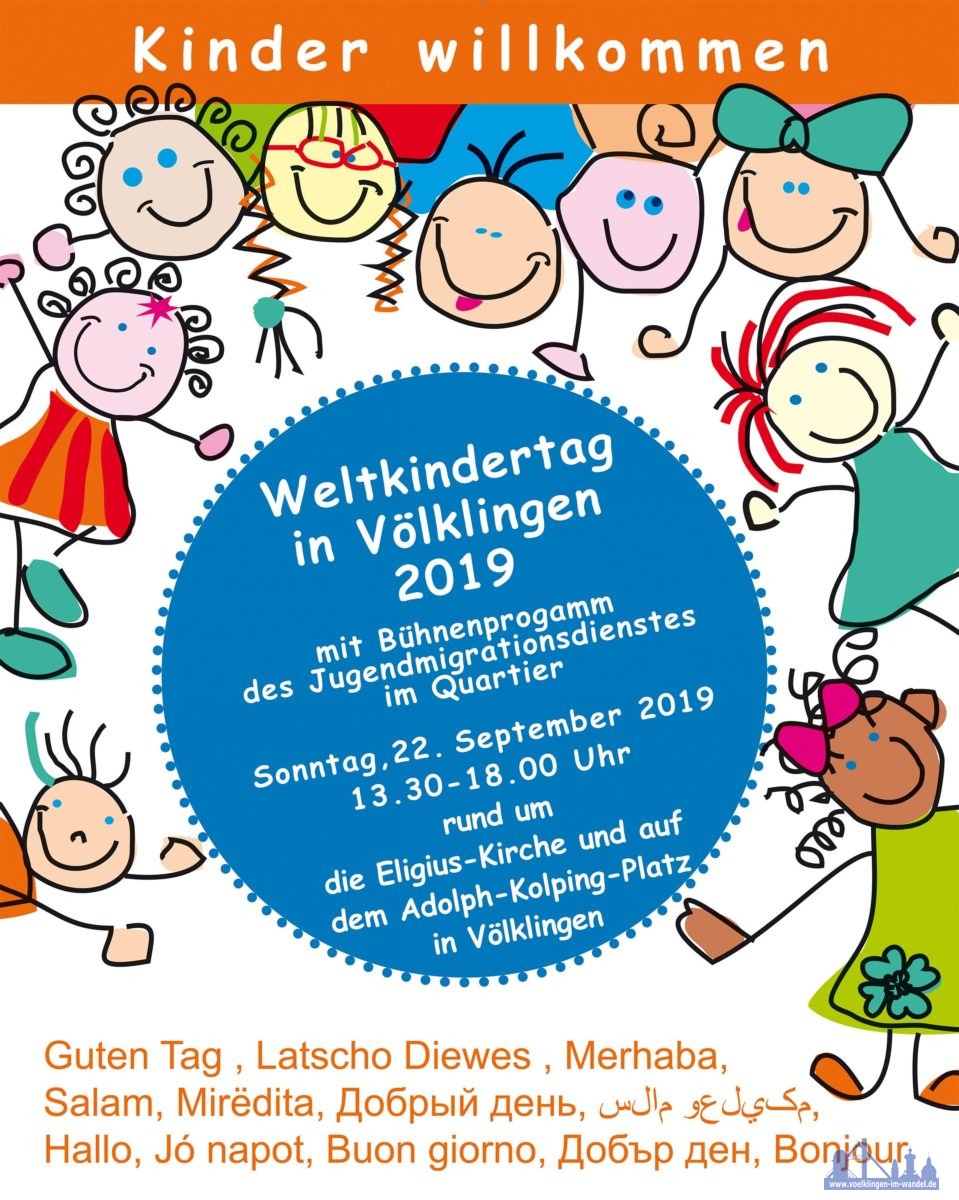 #Völklingen. Das Fest zum Weltkindertag in Völklingen steht in diesem Jahr unter dem Motto „Kinder willkommen“. Es findet am Sonntag, 22. September 2019, in der Völklinger Innenstadt statt. Das Kinderfest, das anlässlich des UNICEF-Weltkindertages gefeiert wird, beginnt um 13.30 Uhr.